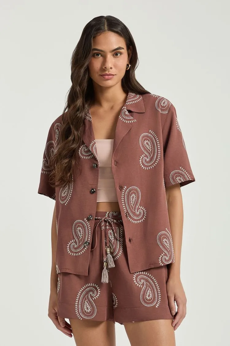 CAMISA MY PLACE BORDADO CASHMERES COFFEE