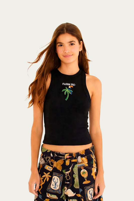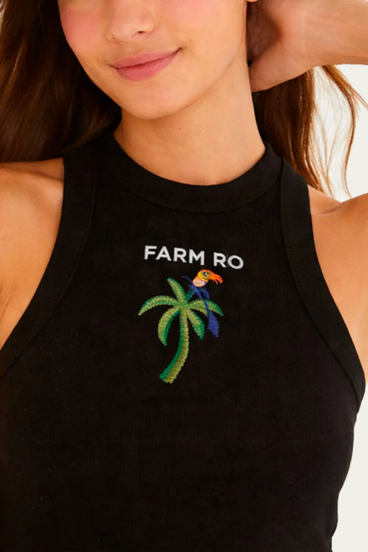 REGATA FARM CROPPED BORDADA COQUEIRO PRETA