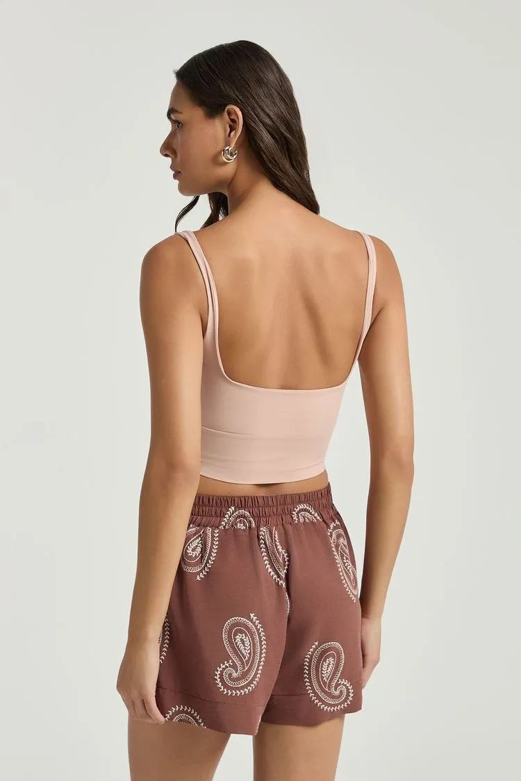 SHORT MY PLACE BORDADO CASHMERES COFFEE